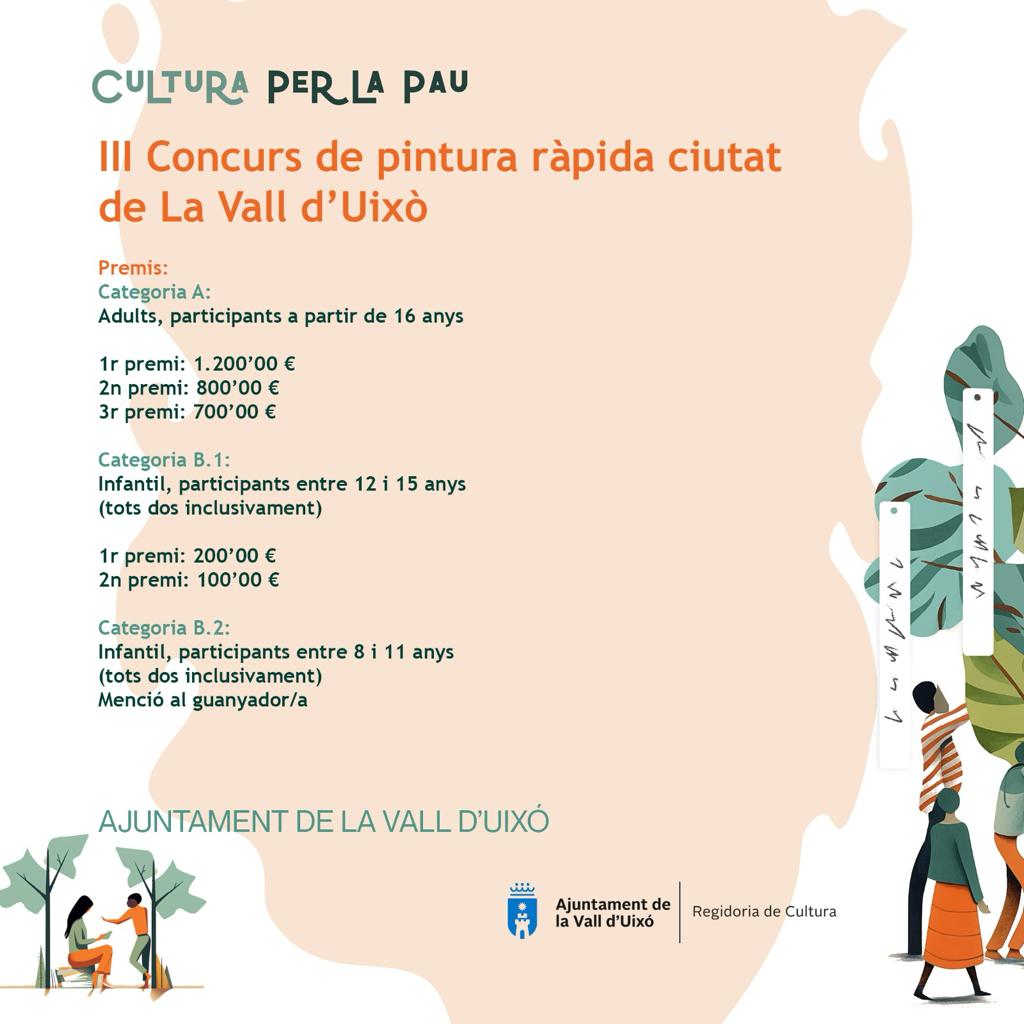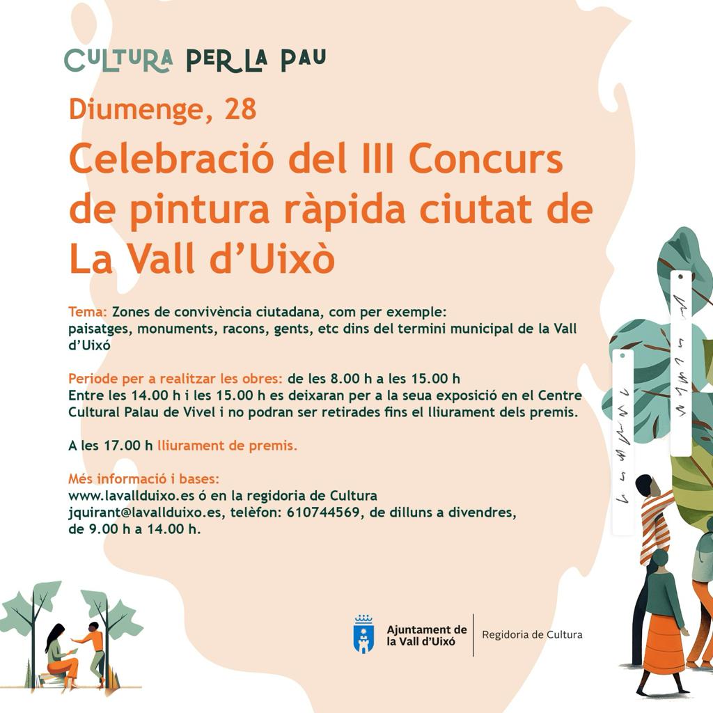 Col·laborem en el III Concurs de Pintura Ràpida Ciutat de la Vall d’Uixó, que se celebra aquest diumenge, 28 de gener, i que enguany s’emmarca dins del programa ‘Cultura per la pau’.